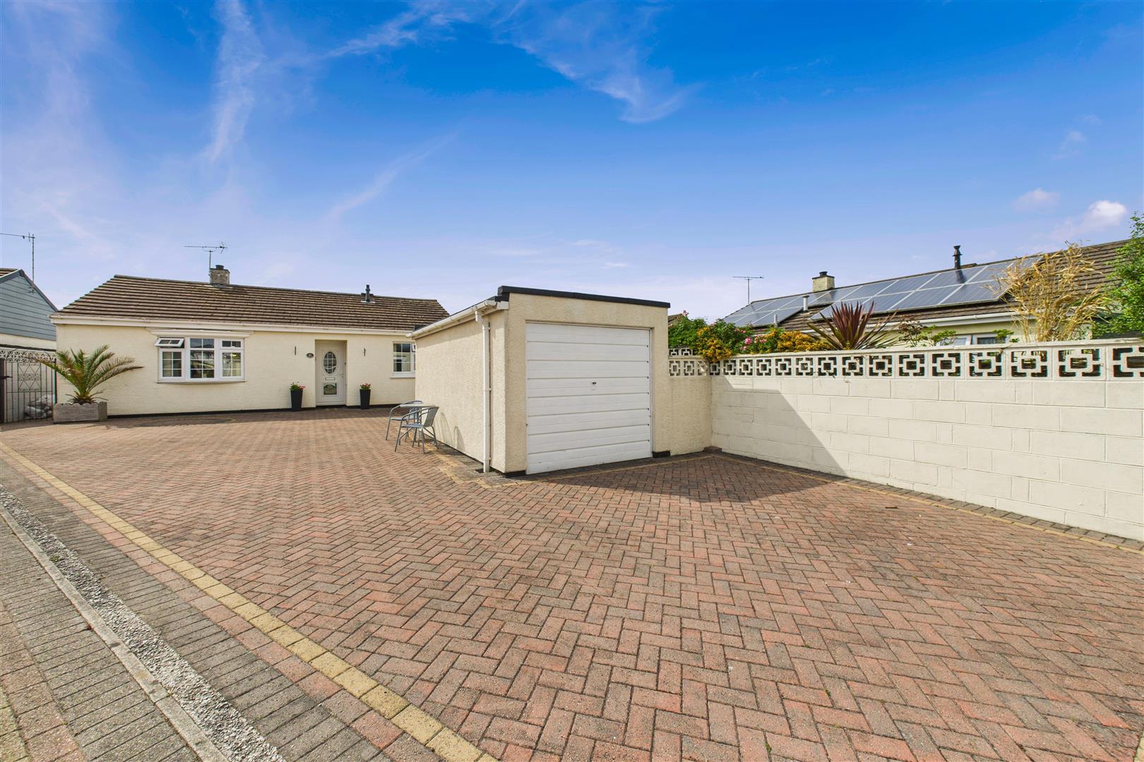 The rear garden is completely level with stone paving surrounding the bungalow moving onto a lawn with a small flower boarder on the boundary wall. The garden enjoys a South East aspect with direct sunlight throughout the afternoon and evening with blockwork boundary wall. To the front is a large brick paved driveway with ample room for 4 cars also accommodating the detached single garage with power and an additional rear access door.