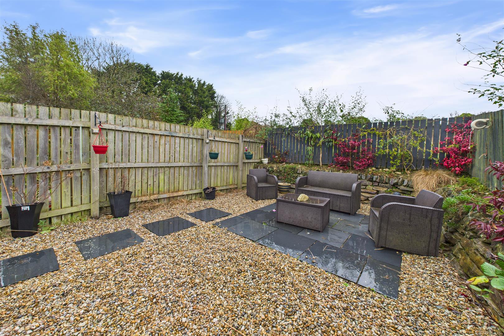 Outside to the front the property has a separate driveway with tandem parking for 2 vehicles. An access gate to the rear provides access to the garden which has been professionally landscaped. Directly from the rear door there is a Brazilian natural slate patio with a block built flower boarder with steps leading to a raised garden. The garden has mainly been laid to decorative aggregate with slate stepping stones leading to another seating area which enjoys most of the day and evening sun.