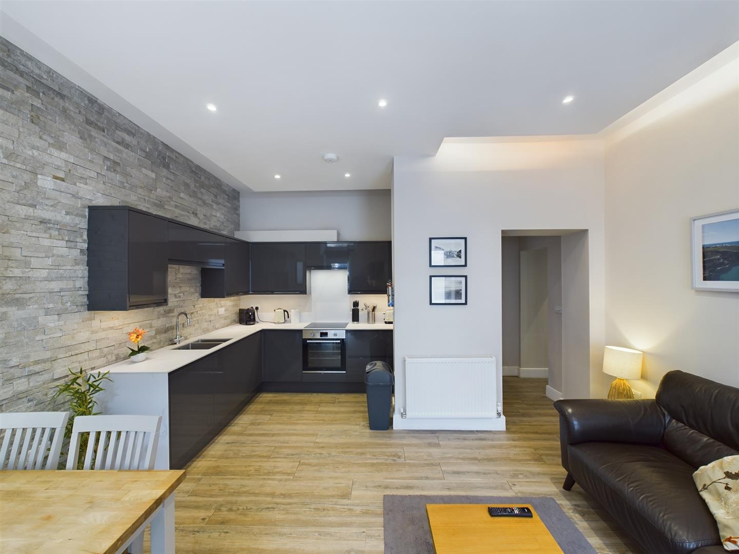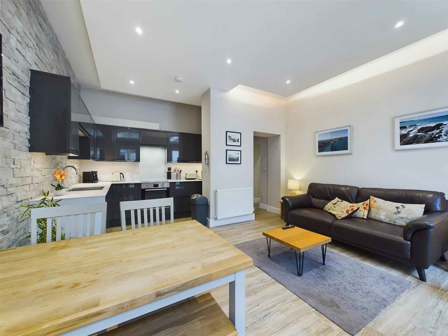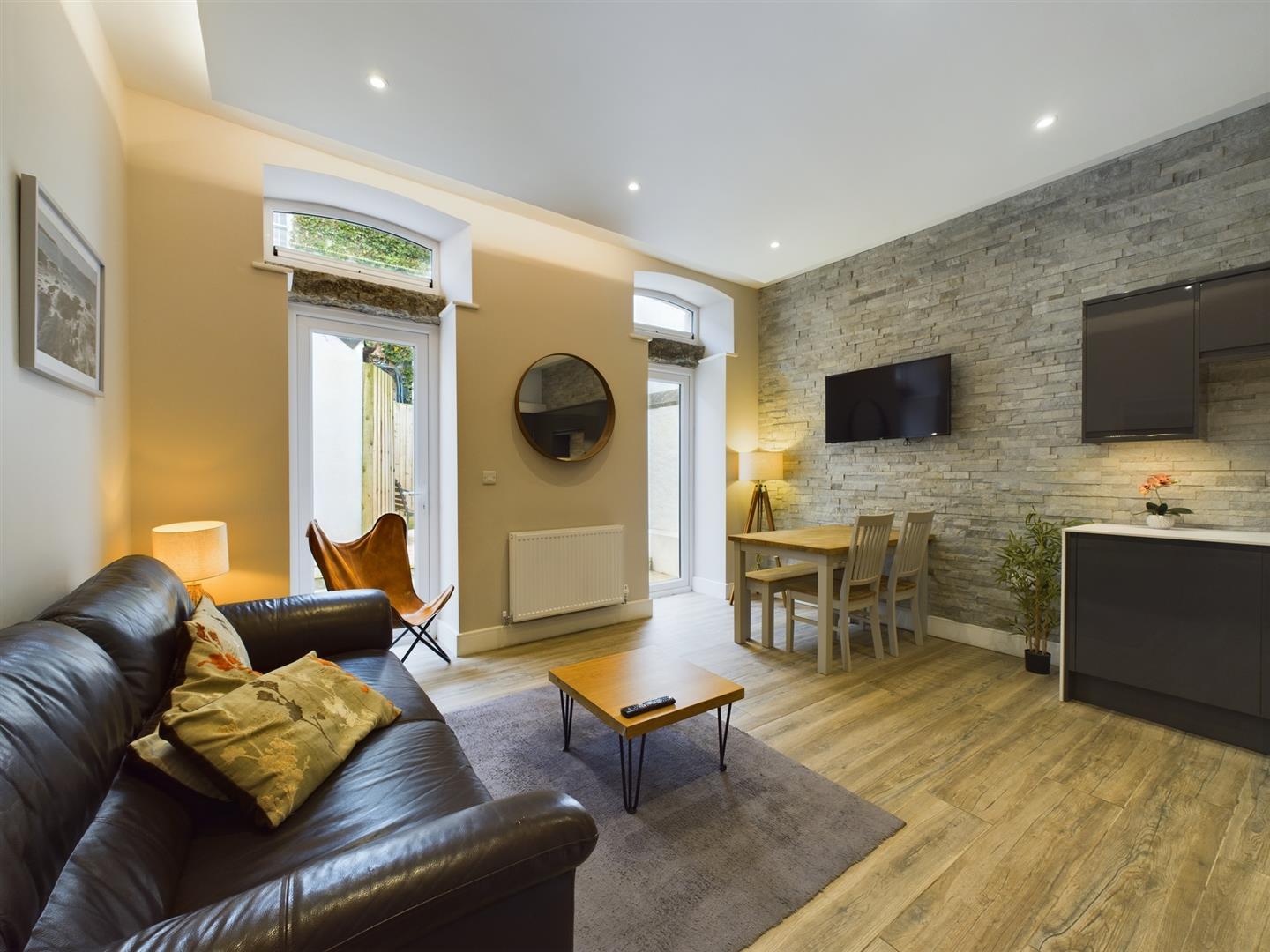 STUNNING SYMPATHETICALLY REFURBISHED GROUND FLOOR 2 BEDROOM APARTMENT IN THE CENTRE OF NEWQUAY PACKED WITH INTERESTING FEATURES AND COMING WITH A PRIVATE SUNNY COURTYARD GARDEN AND 2 PARKING SPACES