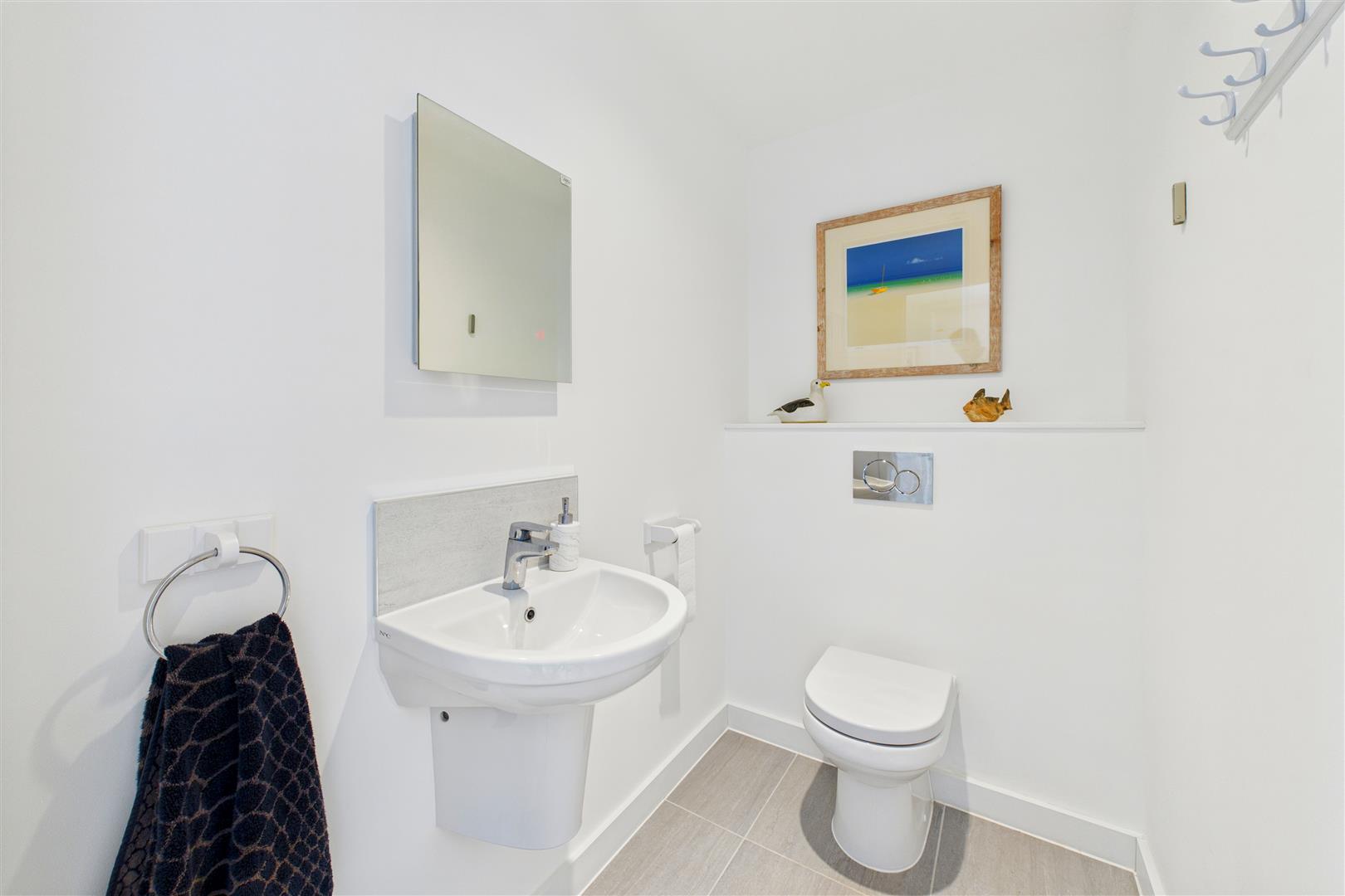 Entering through the covered front door with privacy screen, the property opens into an entrance hall with stairs to the first floor, and door through to the lounge. The front aspect lounge with large picture window gives access to the downstairs WC and utility room. This leads to a spacious open plan kitchen/diner with a modern white gloss kitchen providing top quality NEFF appliances. Beautiful engineered oak flooring is throughout the ground floor, adding to the light and spacious feel.