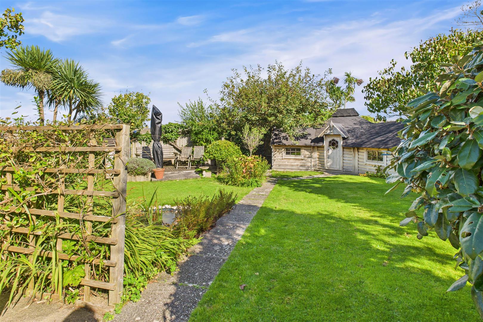 STYLISH DETACHED 3 BEDROOM BUNGALOW ON THE LUSTY GLAZE ESTATE WITH 2 RECEPTION ROOMS, A LARGE DRIVEWAY, A GARAGE AND A STUNNING REAR GARDEN INCLUDING A LARGE TIMBER GARDEN CABIN/OFFICE
