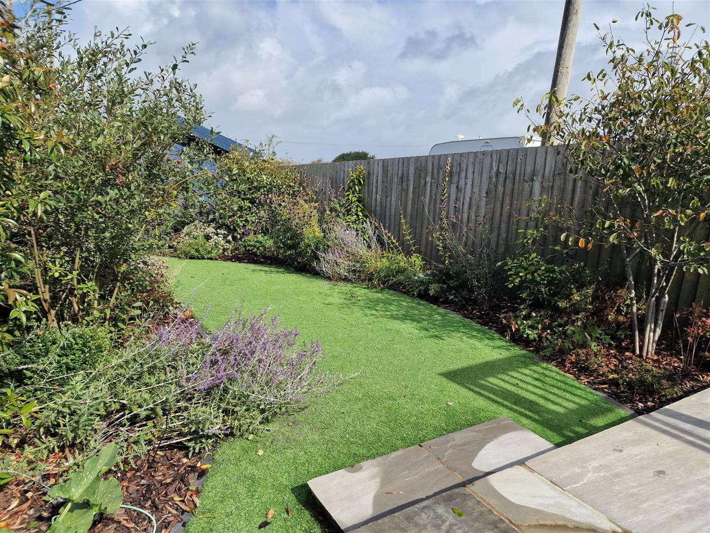 A side pedestrian path leads to the rear of the property past a refuse shed and store directly onto the stone paved full width landscaped patio area with raised planters and a free-standing seating pergola overlooking the artificial lawned area and surrounding mature planting. To the bottom of the garden is a substantial garden room/workshop adjacent to a dining/seating pergola capable of accommodating a large dining table or perhaps a hot tub under cover?